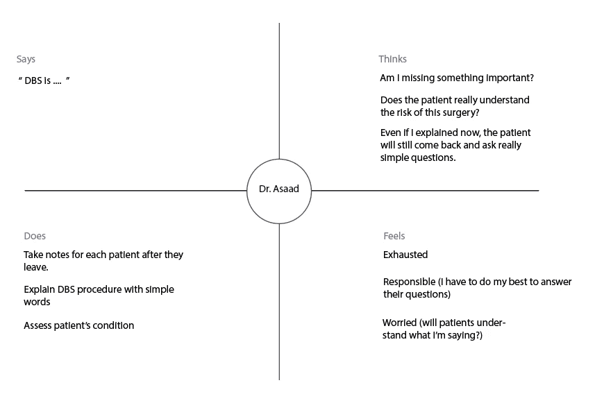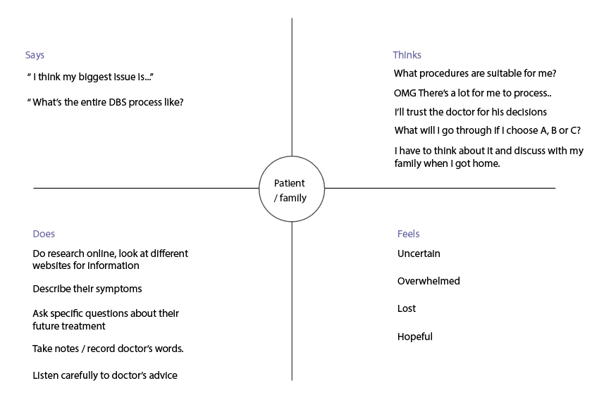To understand the relationship between the physician and his patients, we created user empathy maps for both the physician and the patient and their families.