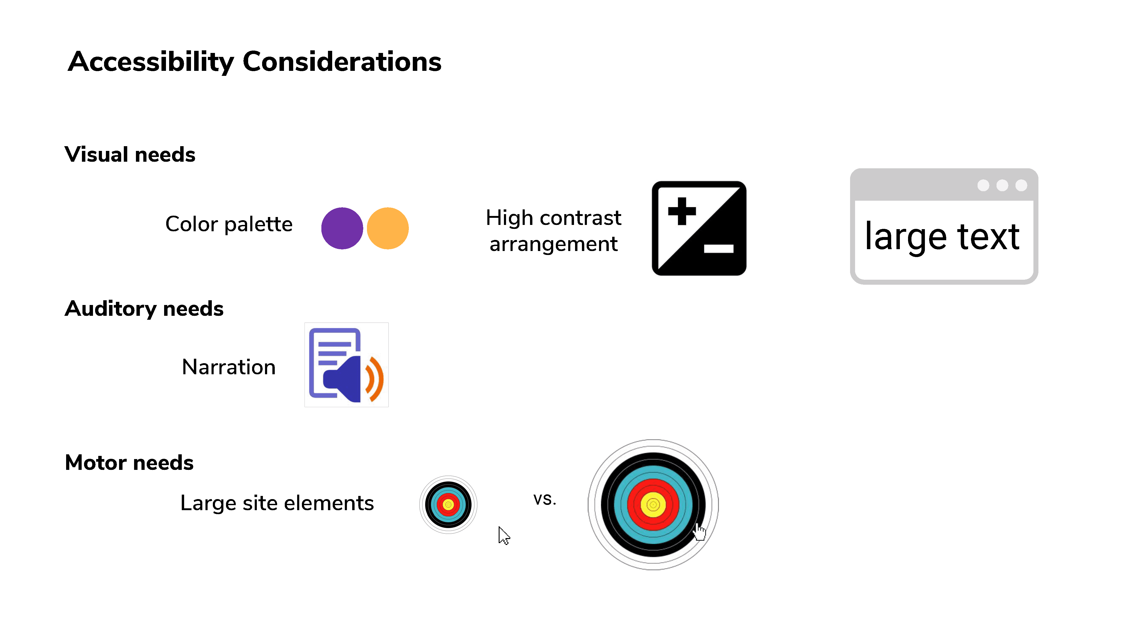 Fonts were at minimum 12-16 pt and sans serif, and buttons were at least 9.6 mm (36px) in length. Since elderly populations consistently excel in attention span, persistence, and thoroughness, long paragraphs were not something we ruled out. For those who experience vision loss, which is common, we provided text-to-voice accessibility.